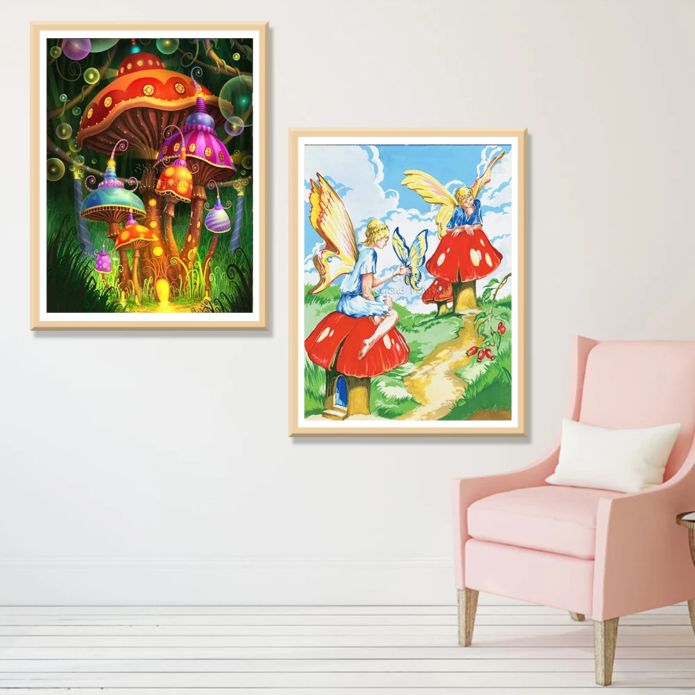 Алмазная живопись грибы цветы пейзаж мультфильм 5D DIY вышивка искусство квадрат Круглая Мозаика Набор для вышивки крестиком домашний Декор подарок