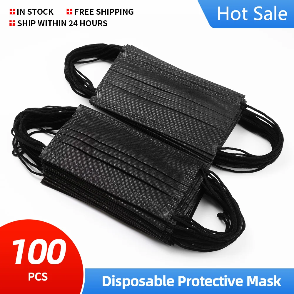 В наличии 3-слойная маска одноразовые маски для лица черные непромокаемые Наушники маска с фильтром пылезащитные дышащие защитные маски для взрослых