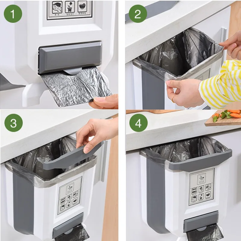 1. Его можно легко повесить на кухонную дверь или дверь шкафа, его легко установить, и он может хорошо храниться. Этот мусорный контейнер легко моется и водонепроницаем.