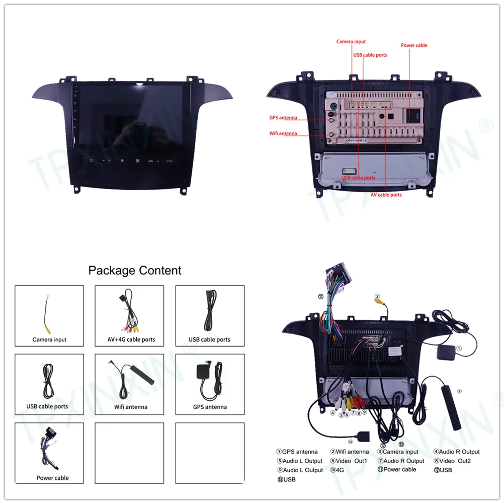 Автомобильный радиоплеер, 6 + 128 ГБ, для Ford S-Max 2006-2008, Android 10, Carplay, GPS-навигатор, головное устройство, автомобильное радио с экраном