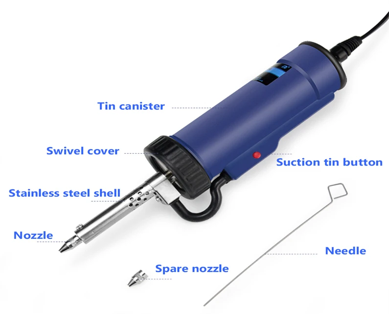 * Пожалуйста, не гладьте устройство всасывания олова при удалении олова, это повредит машину.