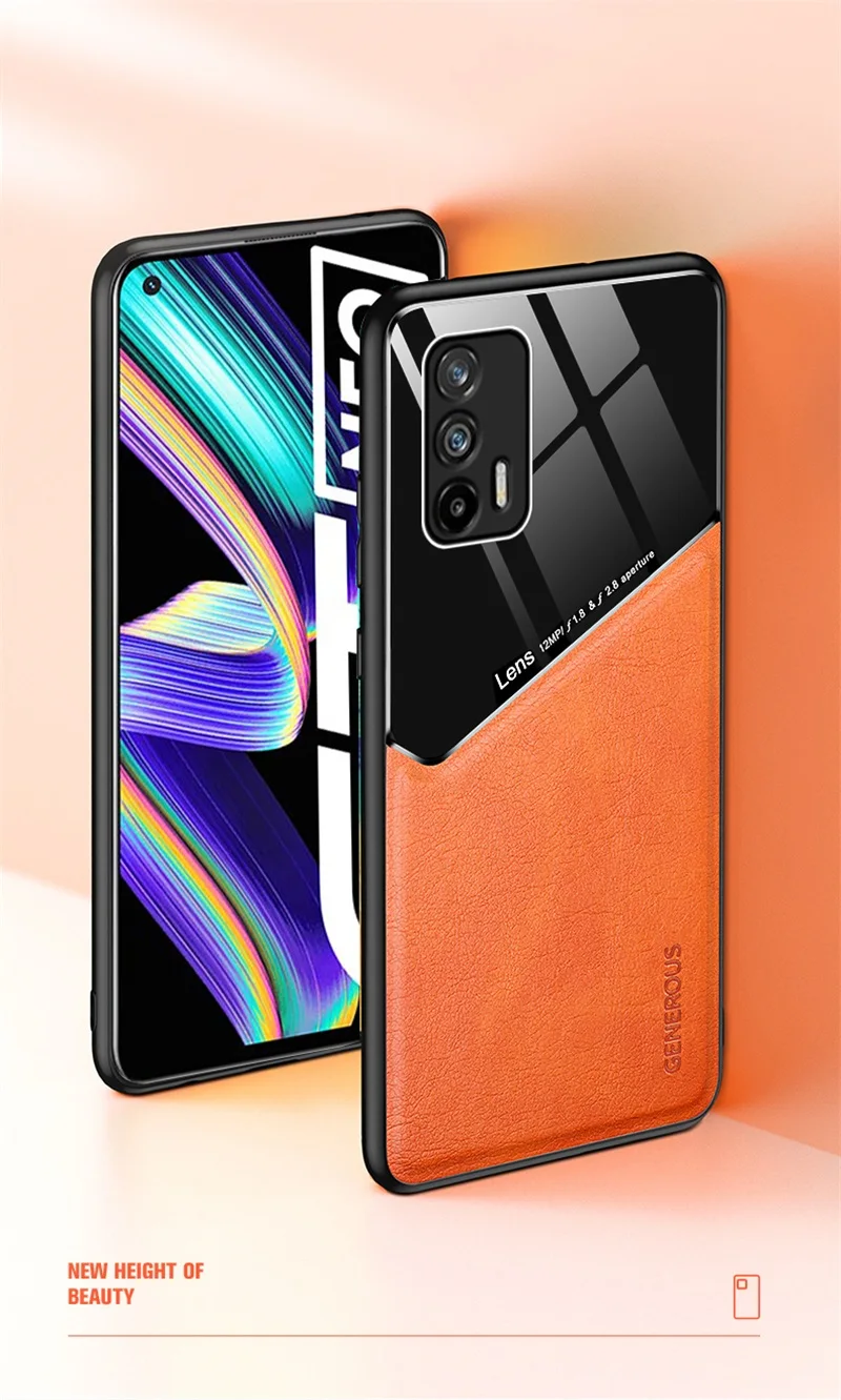 Чехол Realmi GT с кожаной текстурой, автомобильный чехол-держатель Magentic для RealmeGT Realme GT 5G 2021, мягкий силиконовый бампер, противоударный чехол