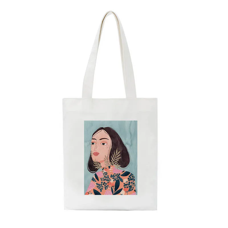 Холщовая женская сумка-тоут в стиле Харадзюку, многоразовая Милая К...