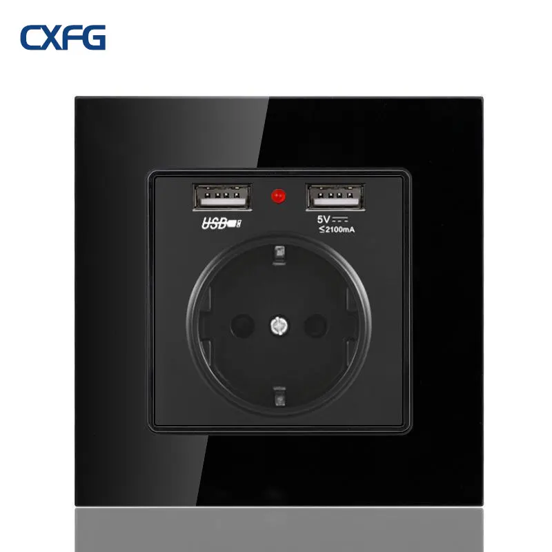 CXFG Европейская стандартная USB-розетка, Высококачественная стеклянная настенная USB-розетка, изысканная розетка для спальни и кухни, переменный ток 110-250 В 16 А