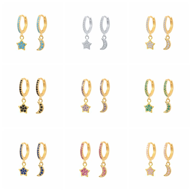 Серьги-кольца с подвесками CANNER 925 пробы, серебристый неправильной формы, 2021, в форме звезды и Луны, 18k, свадебный подарок