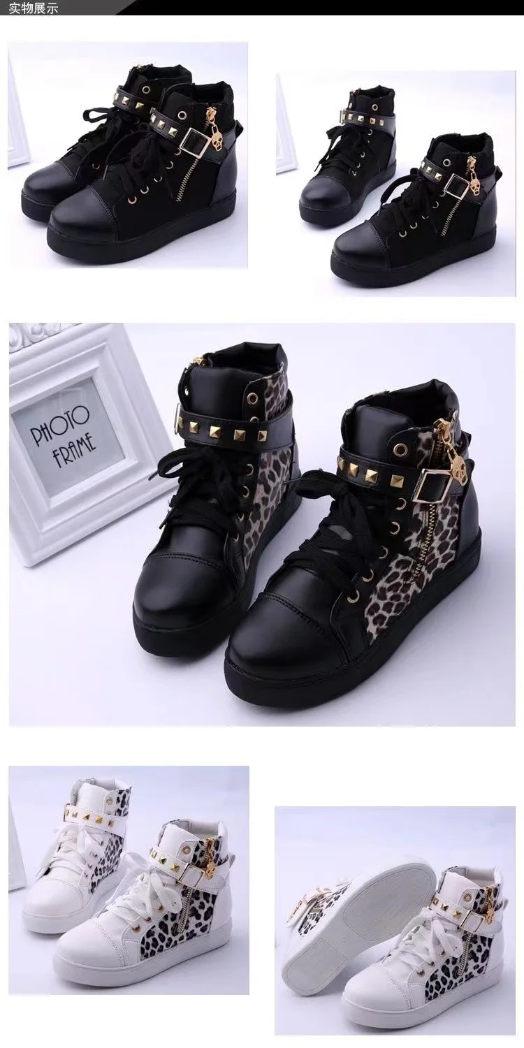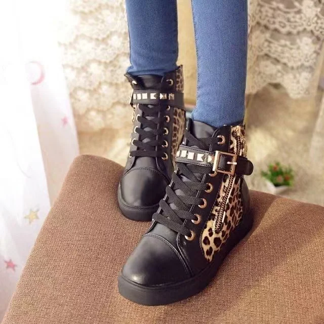 Ботинки женские кожаные, с леопардовым принтом, на молнии, мотоцикл...