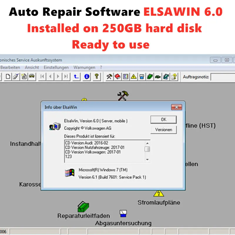2021 программное обеспечение для ремонта авто ELSAWIN 6,0 новейший для Audi Для VW данные для ремонта авто Elsa6.0 установлен хорошо на 250 Гб HDD готов к использованию