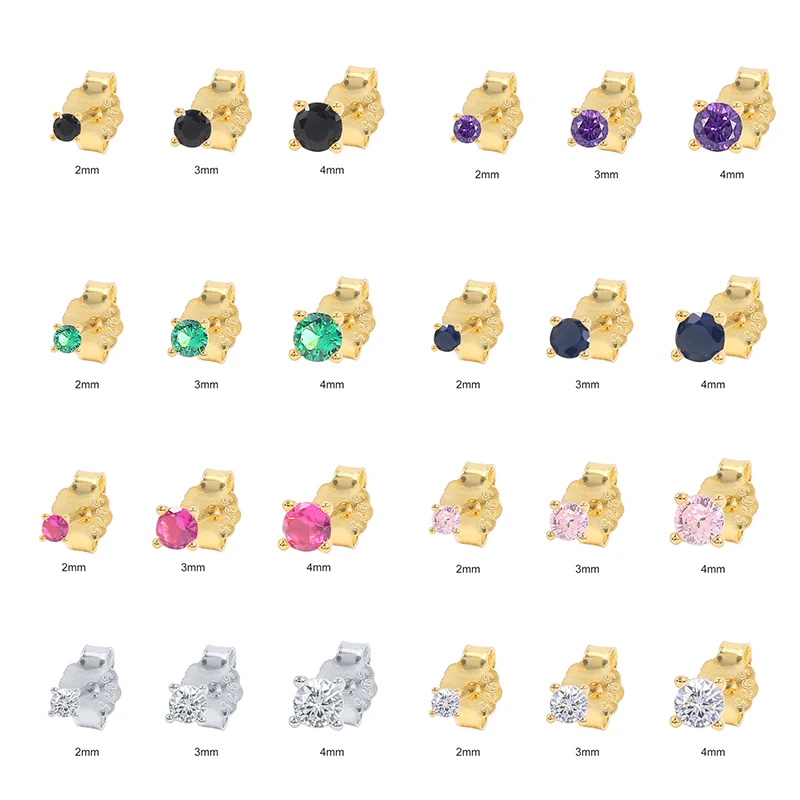 Автоклав Стад Серьги 925 пробы серебряные маленькие из нержавеющей стали, серьги для свадьбы, ювелирное изделие, 2 мм, 3 мм, 4 мм, четыре когти для один камень CZ кубический цирконий