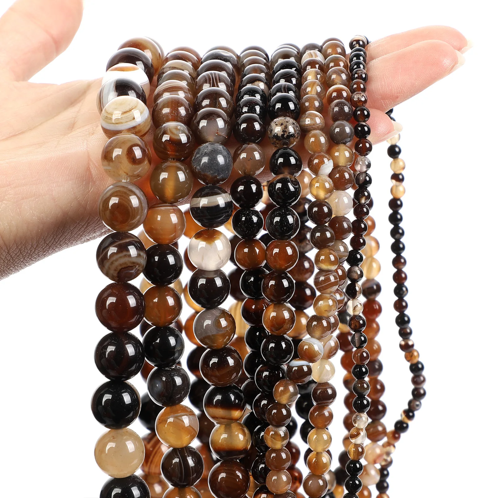 Гладкие коричневые бусины из полосатые Агаты натурального камня, круглые свободные бусины-распорки для ожерелья ювелирные изделия, изготовление браслетов, 4681012 мм