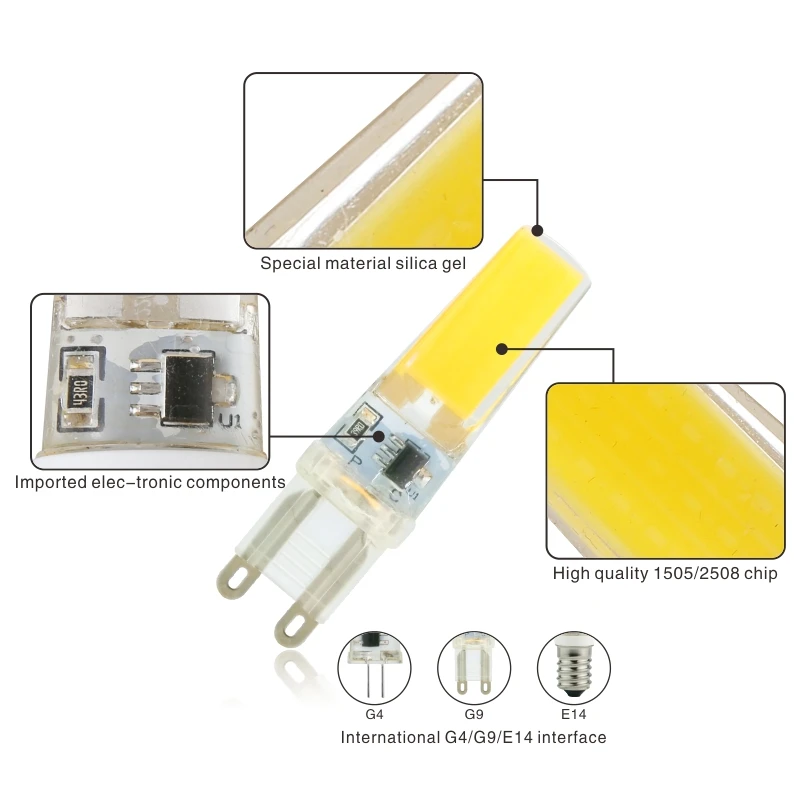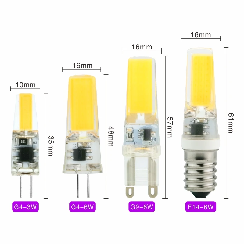 Светодиодная лампа G4 G9 E14, 10 шт.лот, 3 Вт, 6 Вт, 12 В переменногопостоянного тока, 220 В