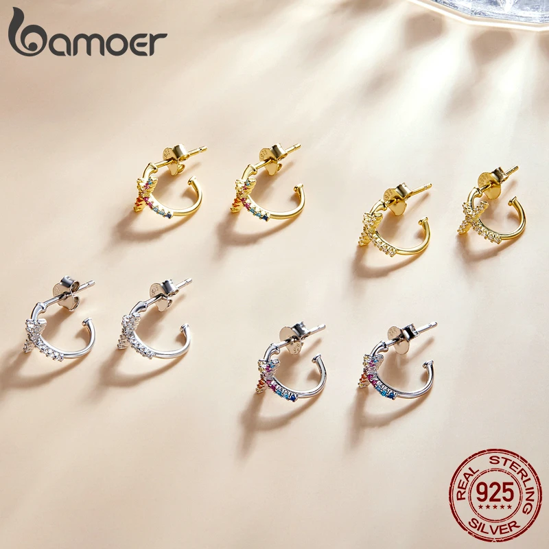 Модные серебряные серьги Bamoer, блестящие серьги-гвоздики со звезд...