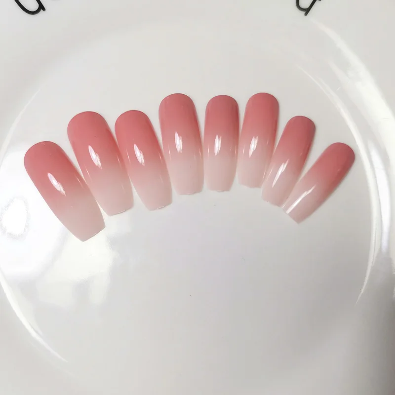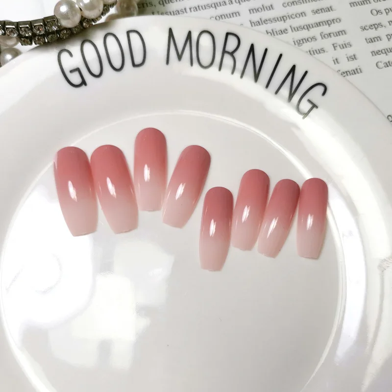 Длинный балетные постепенно Розовый французский носить накладные ногти маникюр длинные элегантные арт гроб Пресс на накладные ногти патч