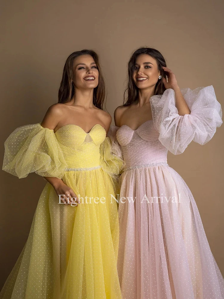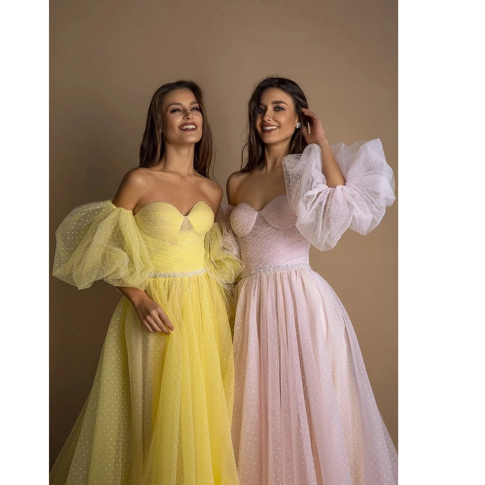 Вечерние платья Verngo в пыльный розовый горошек из тюля, корсет с ...