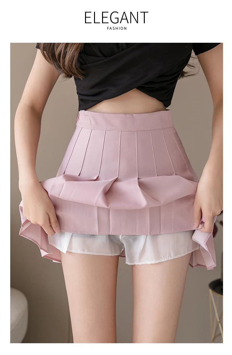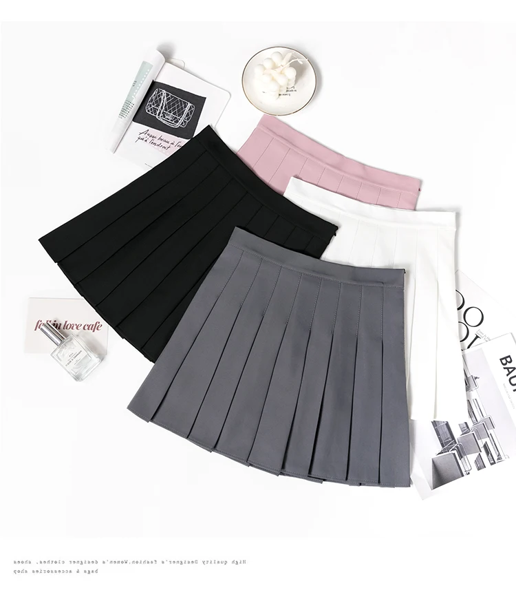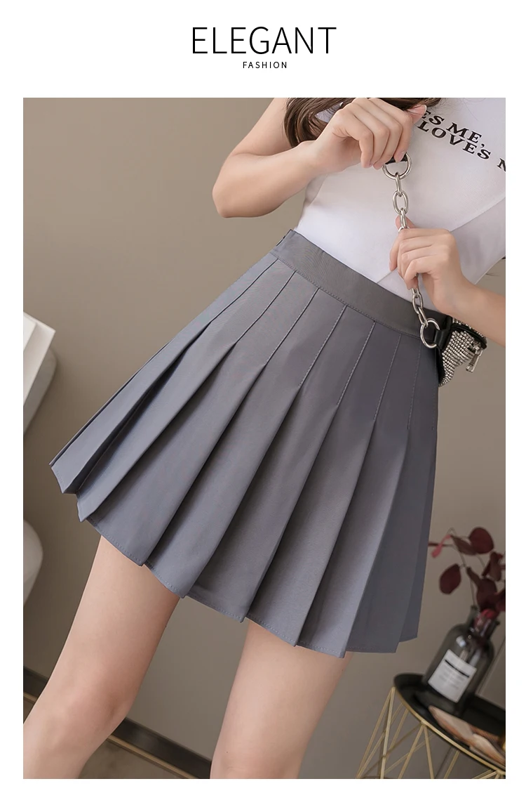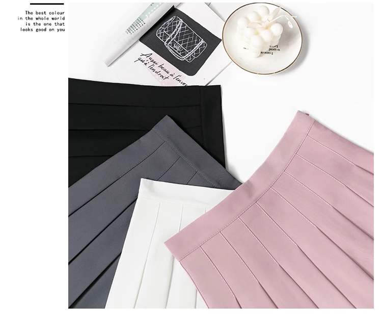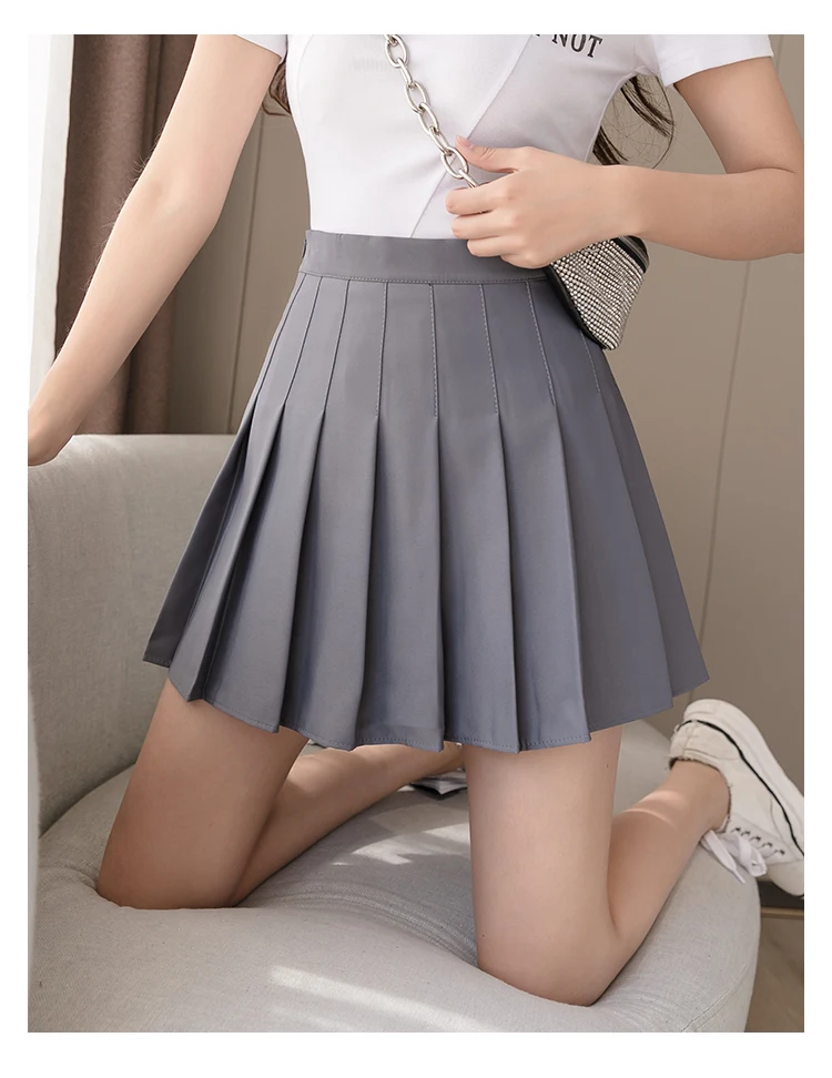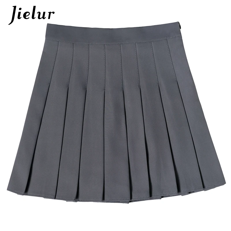 Jielur Женская юбка с высокой талией для женщин однотонные Цвет плиссированная юбка трапеция женский 2021 летний консервативный Стиль мини-юбки студент S-XXL
