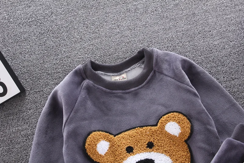 Детская одежда, осень и зима, золотой бархатный плотный теплый костюм, свитер с капюшоном с мультяшным медведем, флисовый комплект из 3 предметов для мальчиков и девочек