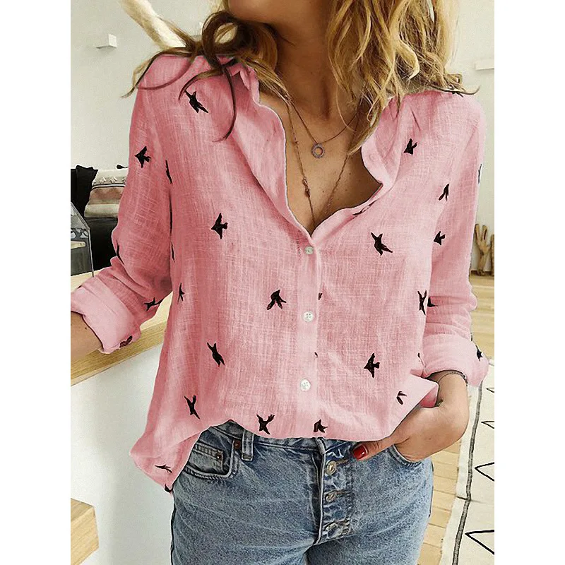 Блузка женская с длинным рукавом, с принтом птиц, на пуговицах, на ...