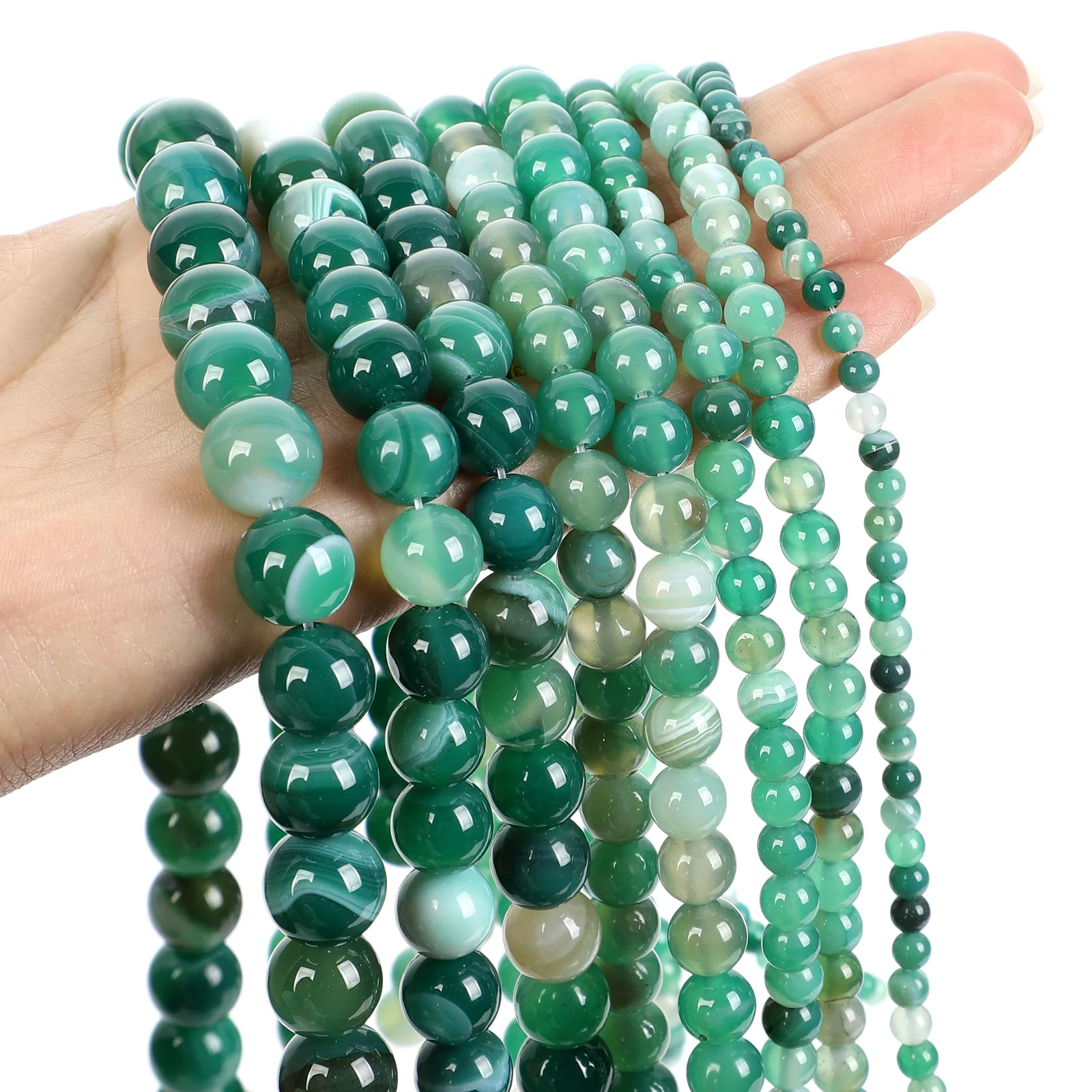 Круглые бусины из натурального камня, зеленая Бриллиантовая полоса,...