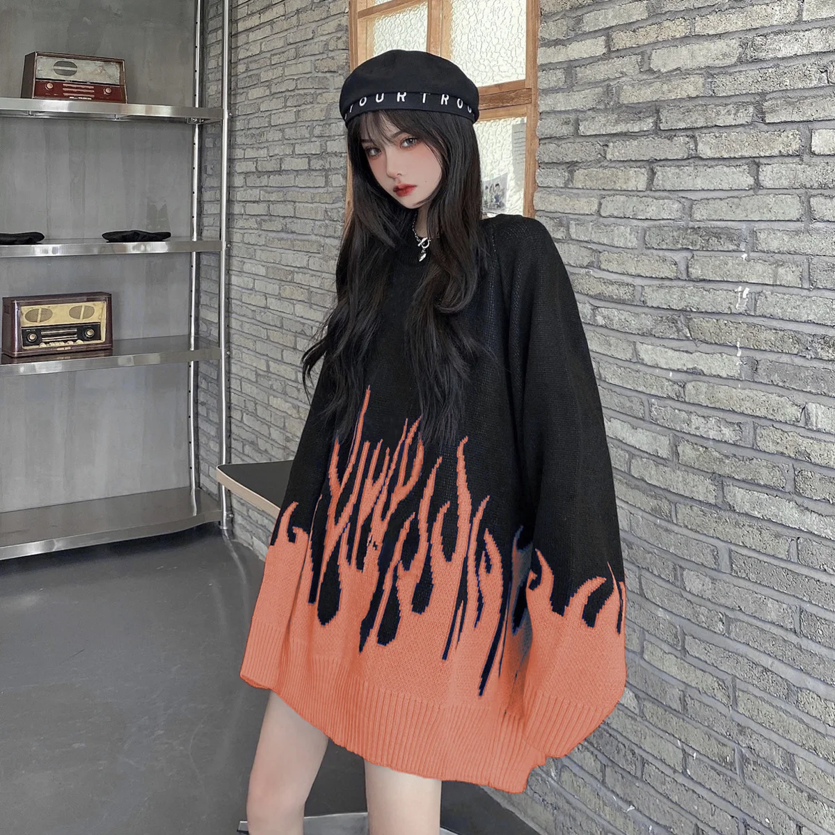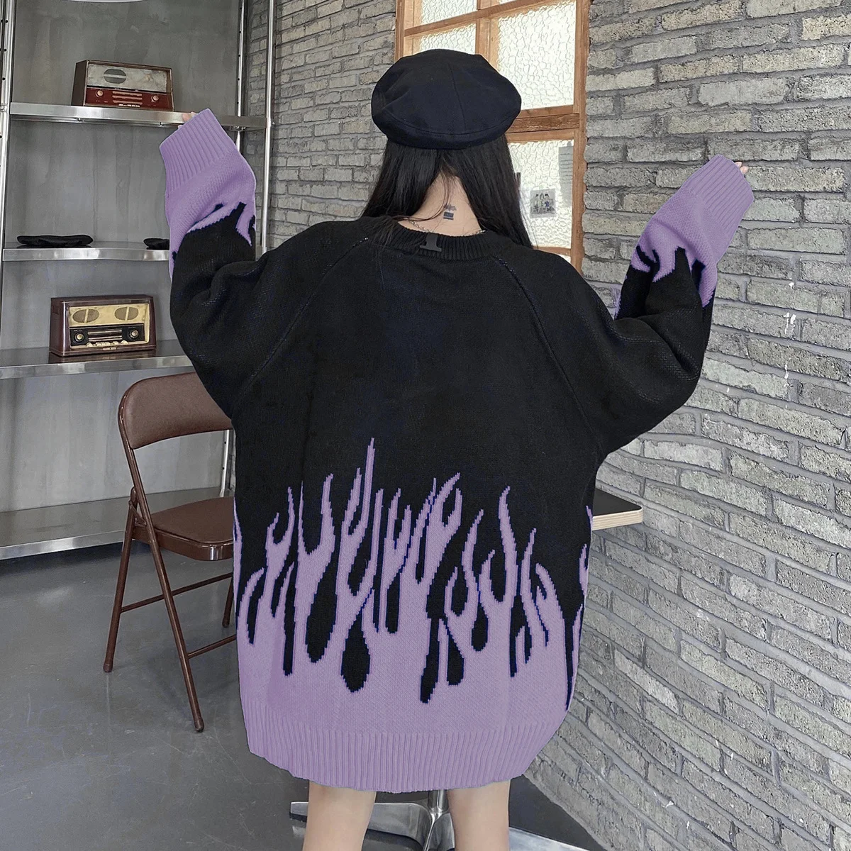 Свитер женский в стиле хип-хоп, жаккардовый свитер с эффектом пламе...
