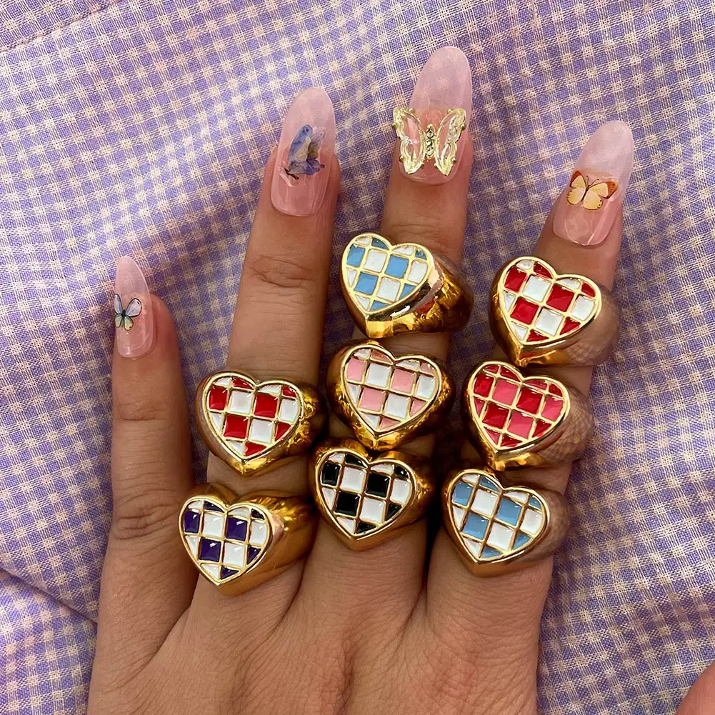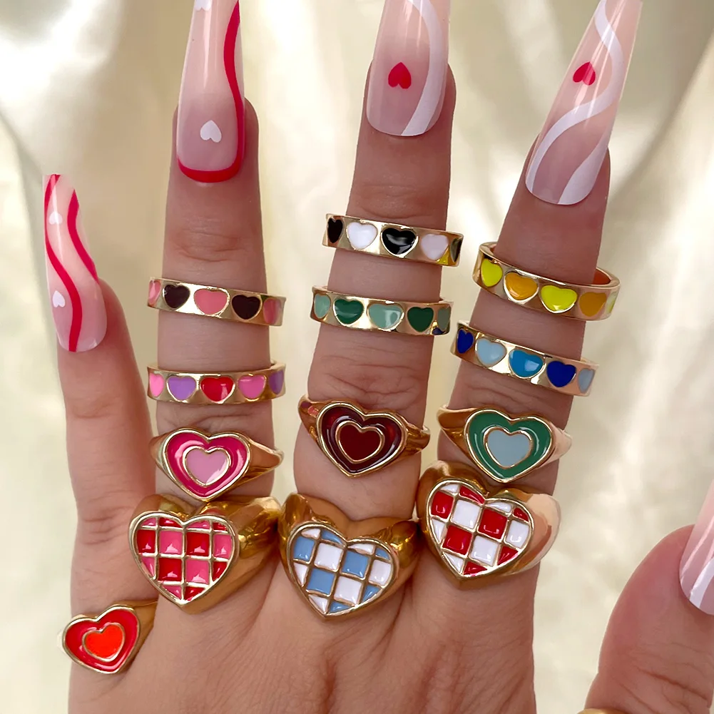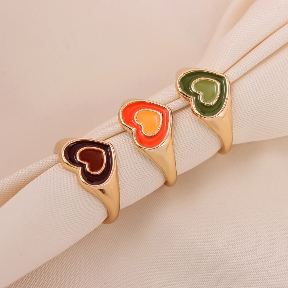 2021 новые милые эмали любовь в форме сердца, хорошие украшения, кольца для женщин, золотые металлические многоцветный капельного глазури кольца модные массивные вечерние ювелирные изделия
