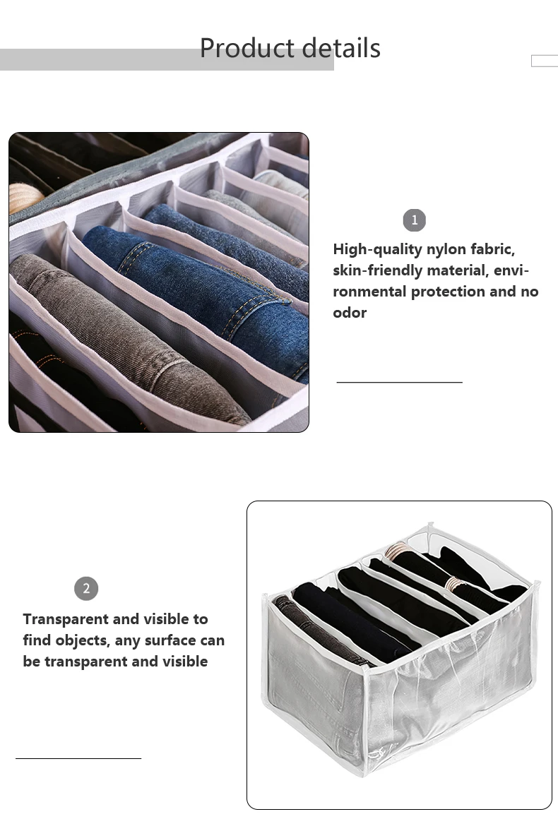 Ящик для хранения джинсов с отсеками, органайзер для носков, одежды...