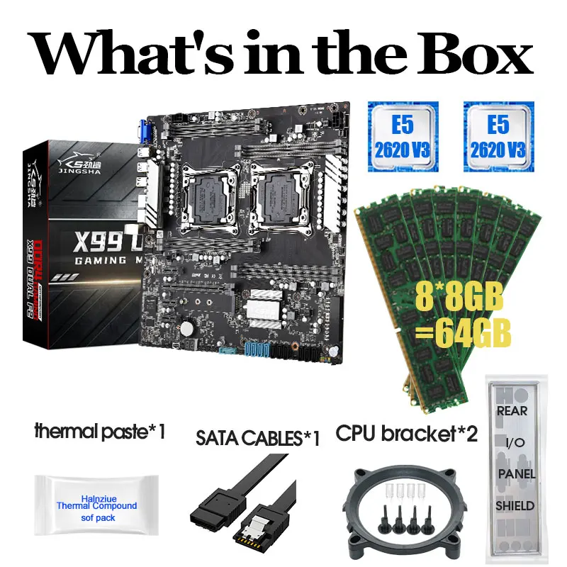 1 * материнская плата + 2 * E5 2620V3 CPU + 8*8GB DDR4 2400MHz ECC REG RAM