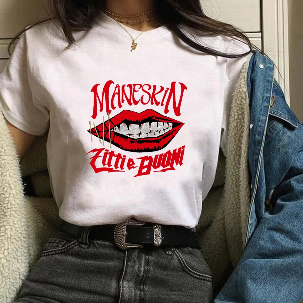 Винтажная Футболка Maneskin с буквенным принтом, летняя музыкальная Фестивальная Повседневная футболка унисекс с круглым вырезом, простая Эстетическая одежда, футболка для женщин