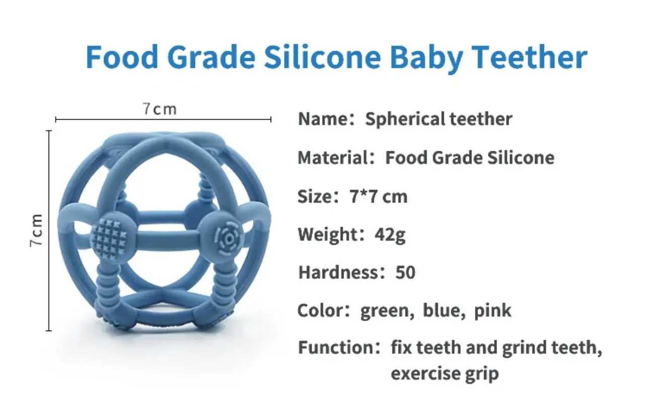 2. Материал продукта: пищевой силикон3. Использование продукта: массируйте десны, снимайте боль в длинных зубах ребенка и массируйте зубы.4. Размер изделия: Сферический диаметр 102 мм5. Вес изделия: 60 г6. Цвет изделия: разноцветный