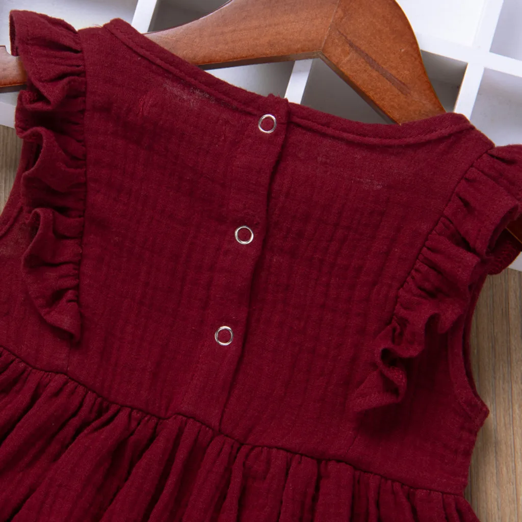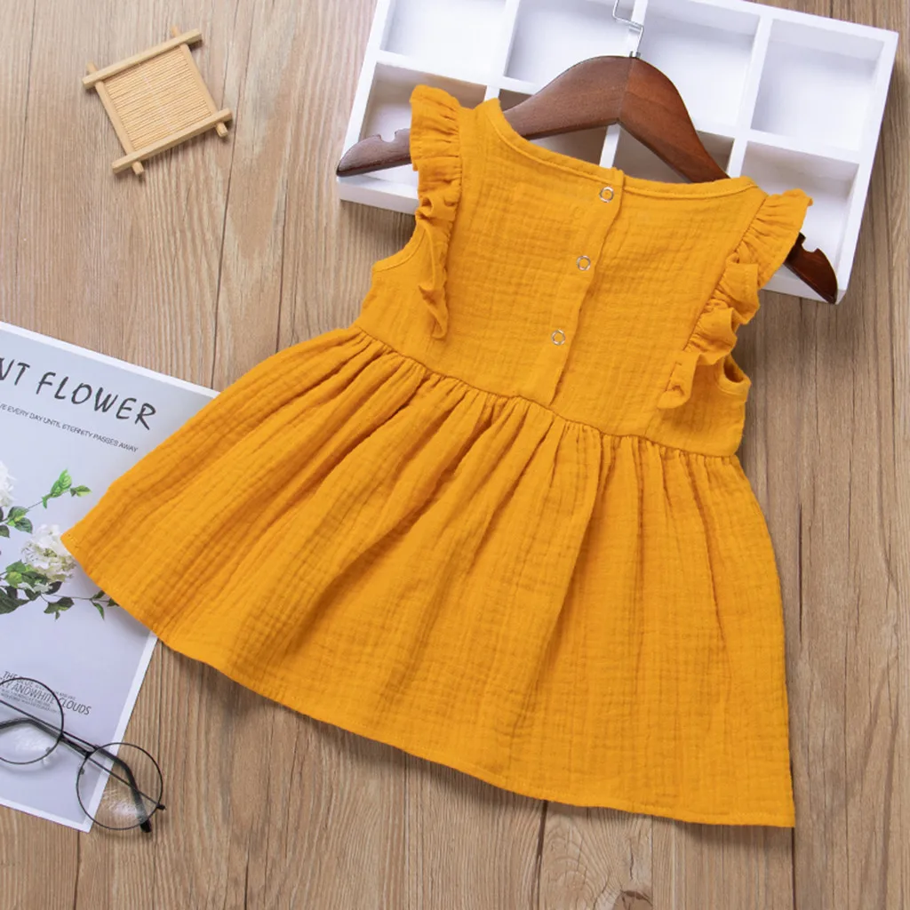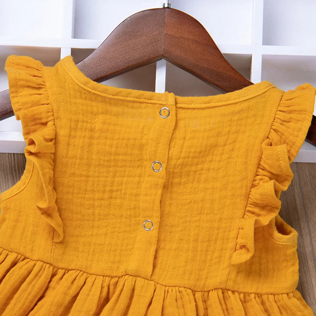 Детские платья для маленьких девочек с оборками для маленьких девочек с рукавами-крылышками с модным сплошным принтом в стиле принцессы; Детское платье; Платье для девочки; Платья для детей летняя одежда для девочек возрастом от 2 до 3 лет, с героями мультфильмов