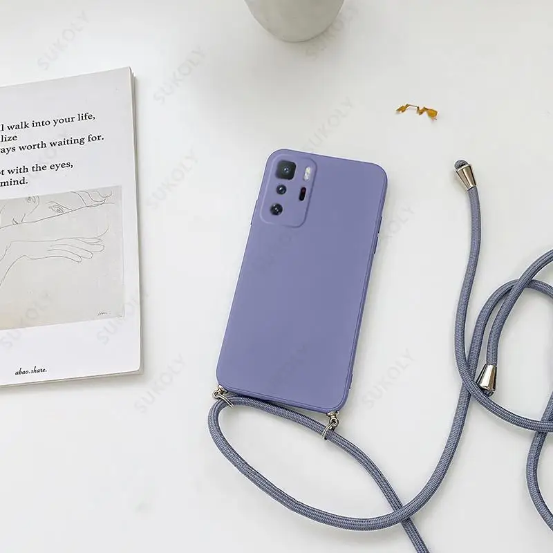 Квадратный жидкий силиконовый чехол со шнурком для Xiaomi Redmi Not...