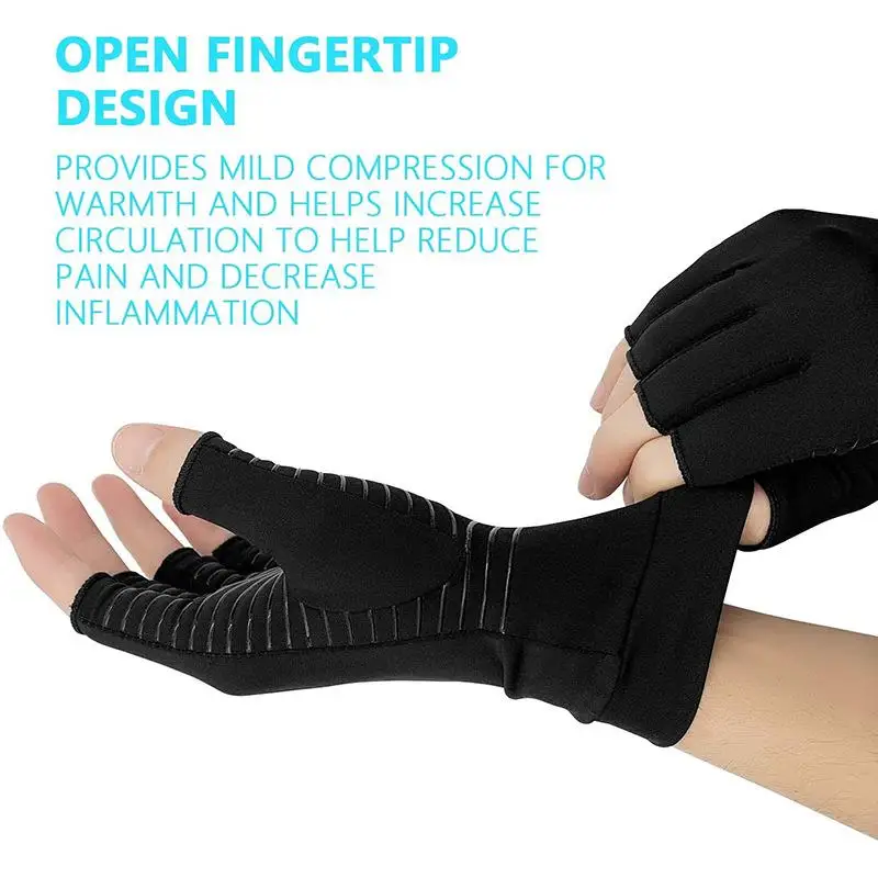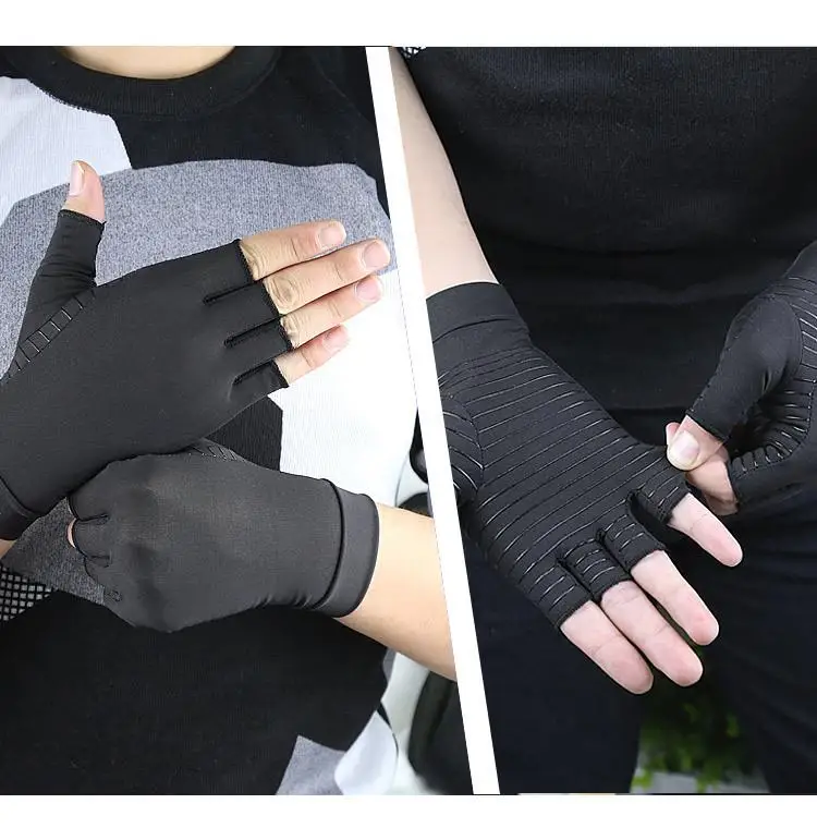 1 пара компрессионные перчатки при артрите руки запястья бандаж палец облегчение боли поддержка медного волокна перчатки без пальцев