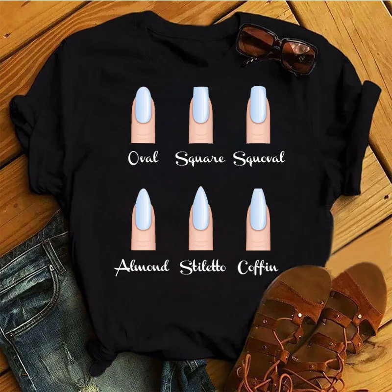 2021 модная женская футболка с принтом ногтей, забавные летние топы...