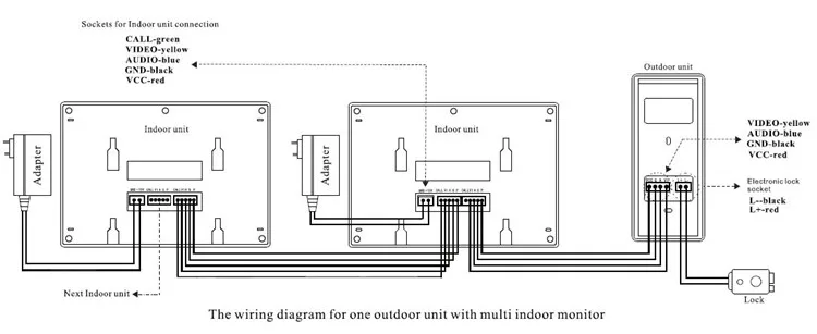 Схема подключения для 1 Наружный блок с Нью-Йорк (1/2/3/4) Крытый монитор: (1V1/1v 2/1v 3/1v4)
