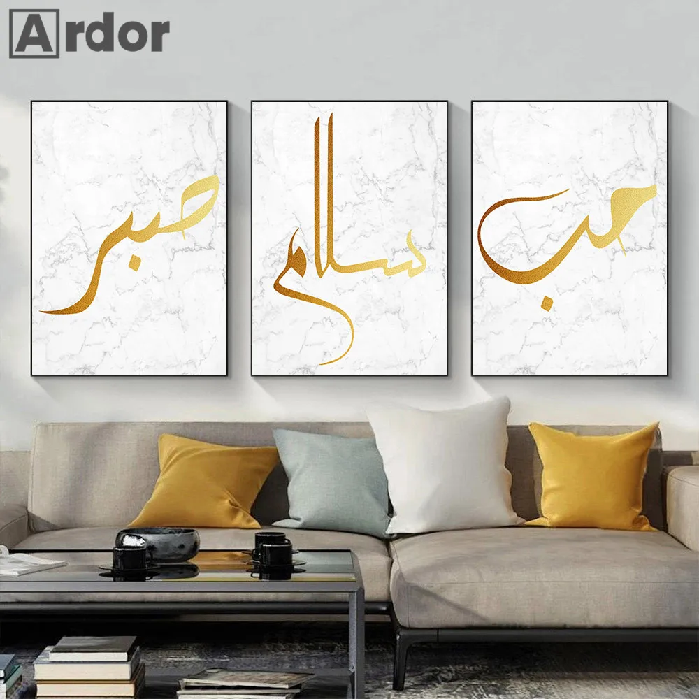Золотая арабская каллиграфия, настенная Картина на холсте, печать на двери мечети, Марокко, Современный исламский постер, настенные картины, декор для гостиной