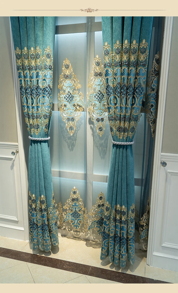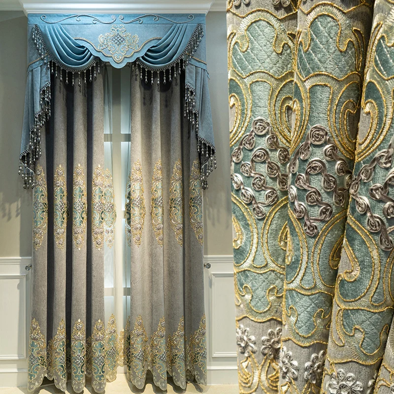 Затемняющие шторы для гостиной, столовой, спальни, роскошный дворец в европейском стиле из синели с вышивкой, водорастворимые, пустотелые, затеняющие окна на заказ