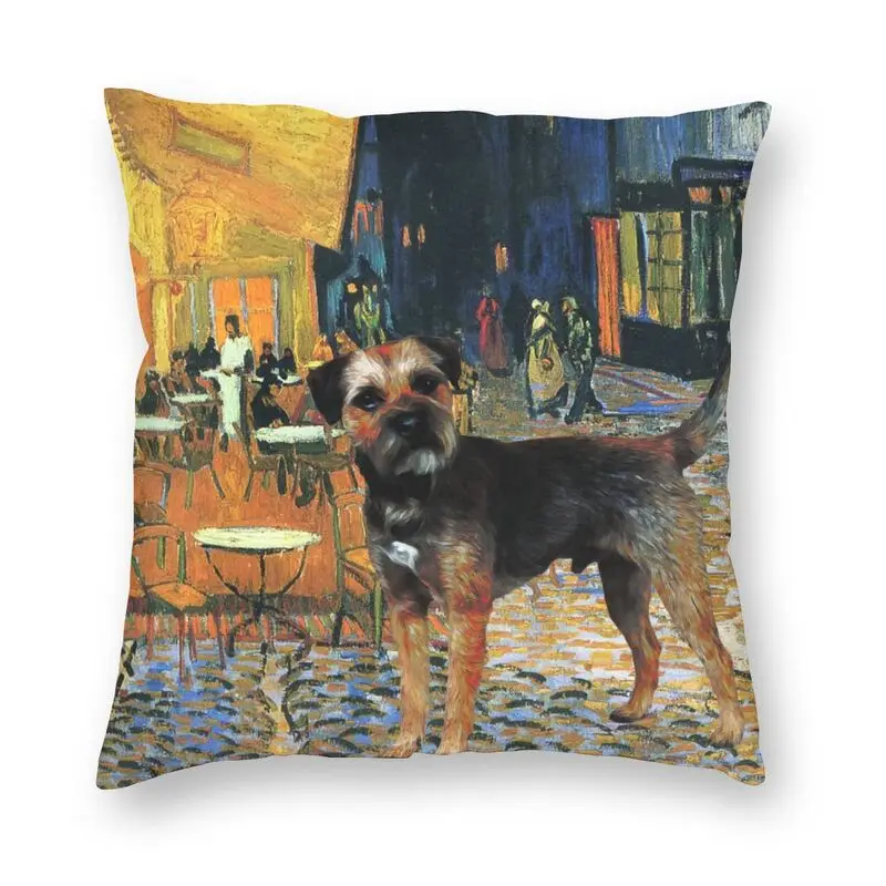 -Терьер художественная Ночная терраса кафе ночью чехол для подушки с двух сторон Ван Гог собака подушка чехол для дивана Подушка Чехол домашнего декора