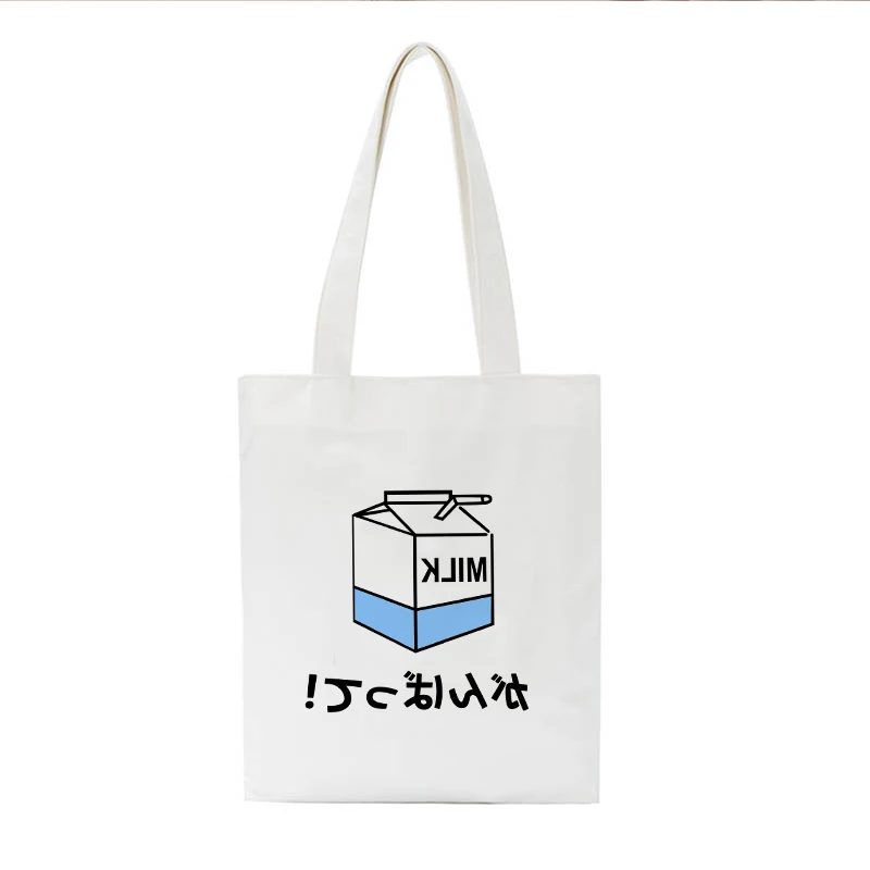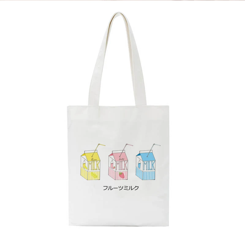 Японские милые забавные мультяшные новые вместительные повседневные холщовые женские сумки на плечо в стиле Харадзюку с молочными милыми мультяшными буквами