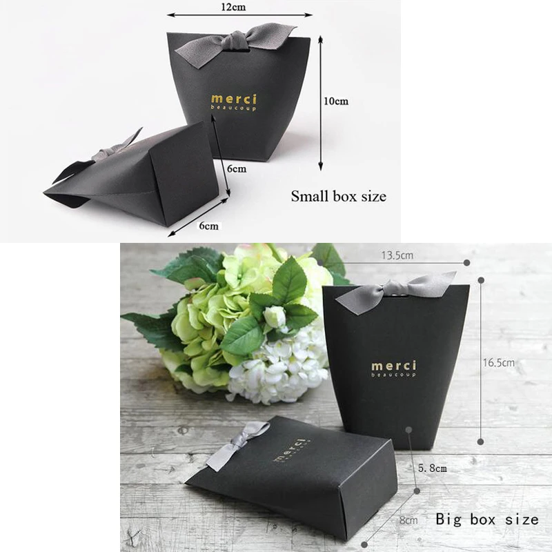 5 шт. высококлассный черный белый бронзовый мешок для конфет "Merci...
