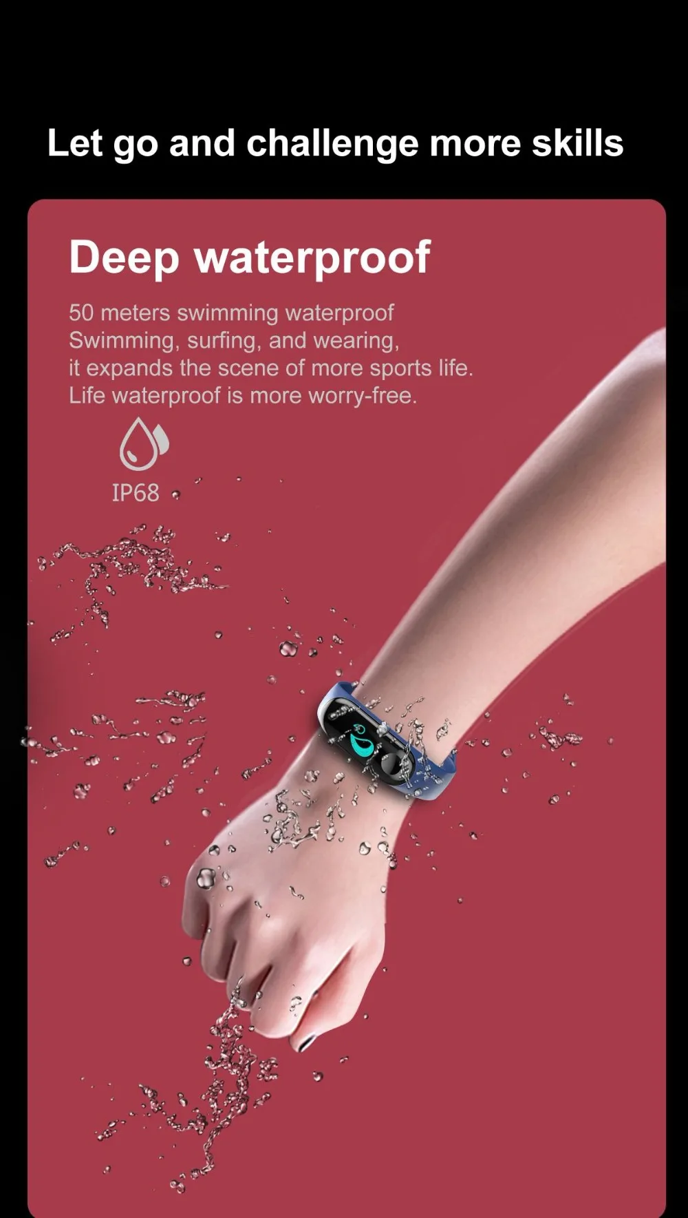 Цветной ips-экран, умный спортивный фитнес-браслет, IP68, водонепро...