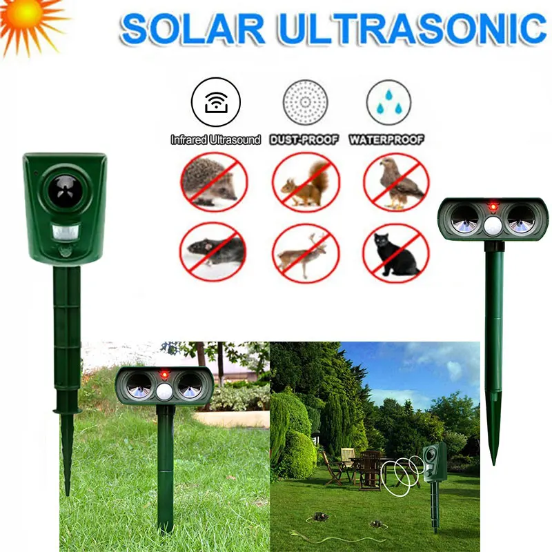 Солнечный ультразвуковой отпугиватель вредителей животных напугать собак кошек птиц открытый сад изгнание Водонепроницаемый сигнализации Встроенный движения PIR Сенсор