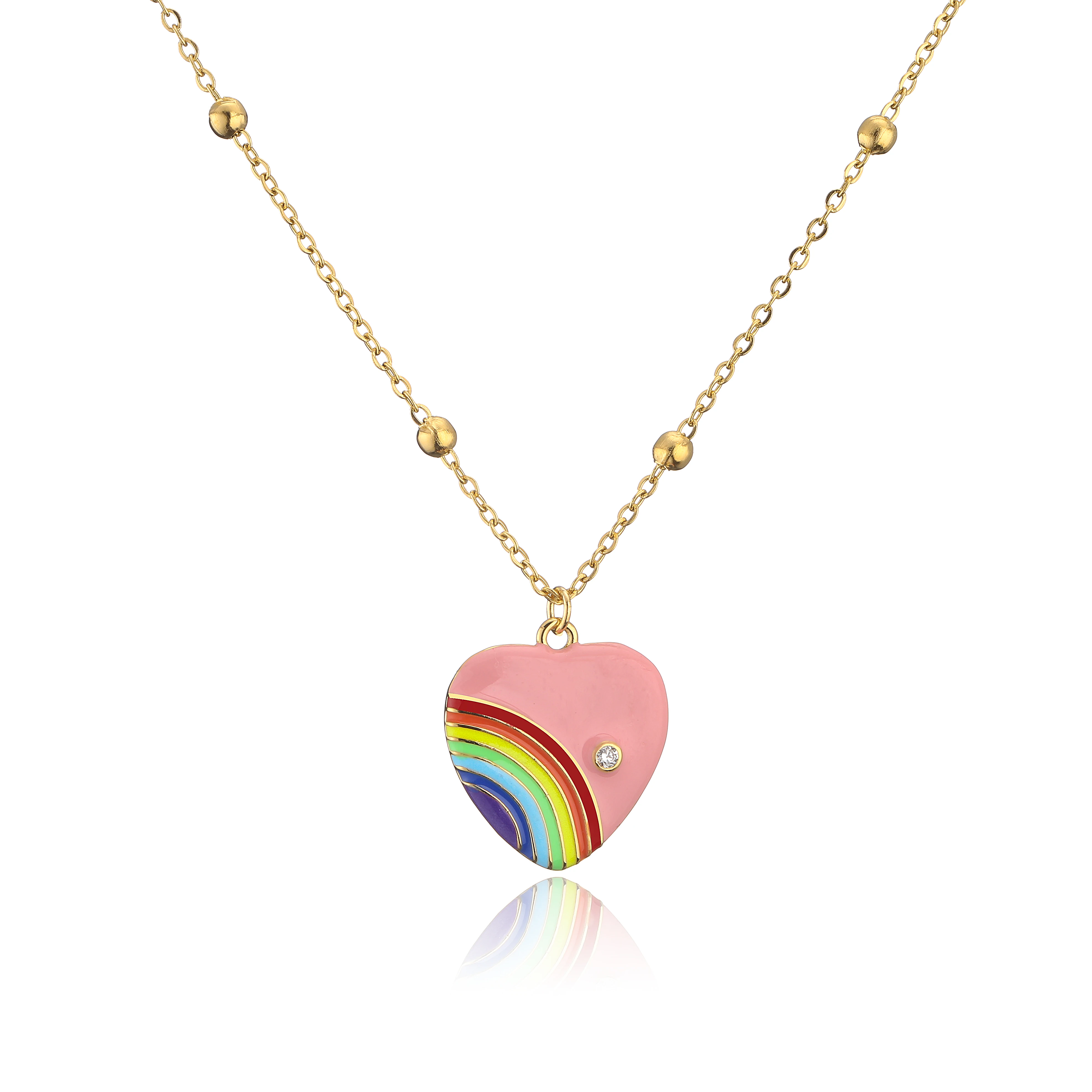 Ожерелье на удачу HECHENG, разноцветное ожерелье в форме сердца, для женщин и девочек, из нержавеющей стали