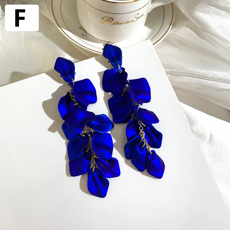 В винтажном стиле в виде лепестков Pendientes пирсинг серьги для женщин богемные акрил роза цветок длинные серьги-кисточки синего и красного цвета, модное ювелирное изделие