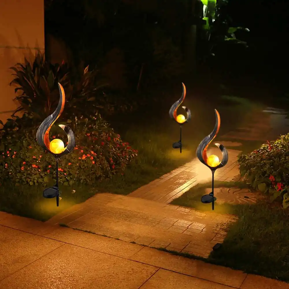 Новейший Солнечный Мощность пламени светильник металлическое украшение из светодиодов ландшафтный светильник на открытом воздухе с эффектом пламени газон дворовый садовый декор
