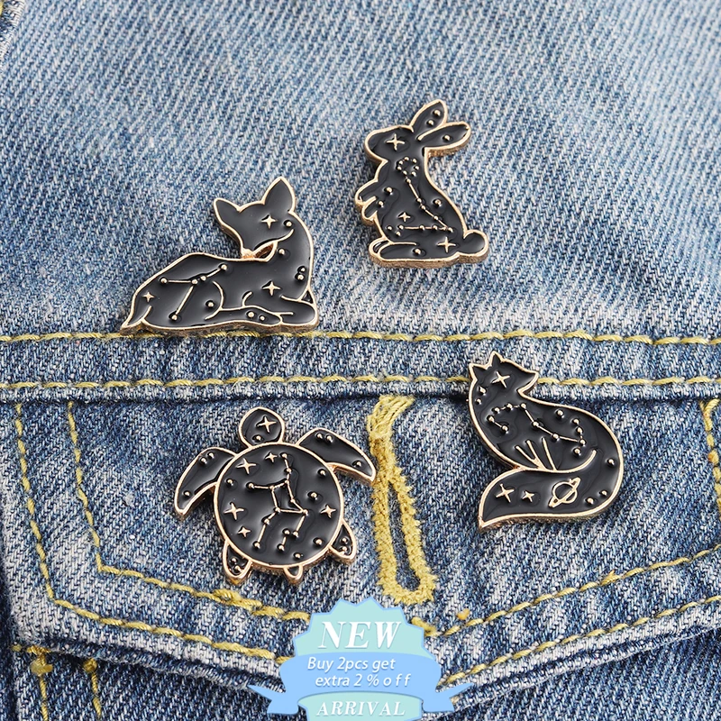 Значок с эмалью Созвездие звезд лиса кролик олень морская черепаха Черное золото значки с животными Подарочные ювелирные броши для друзей оптовая продажа