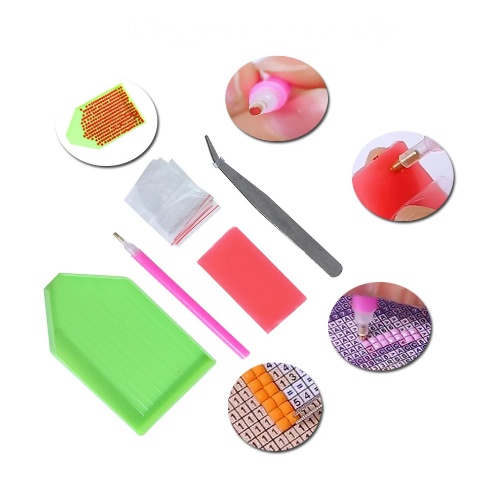 Посылка включает в себя: Холст * 1, пинцет * 1, ручка для инструментов * 1, пластина * 1, достаточное количество алмазов и клеевой грязи.