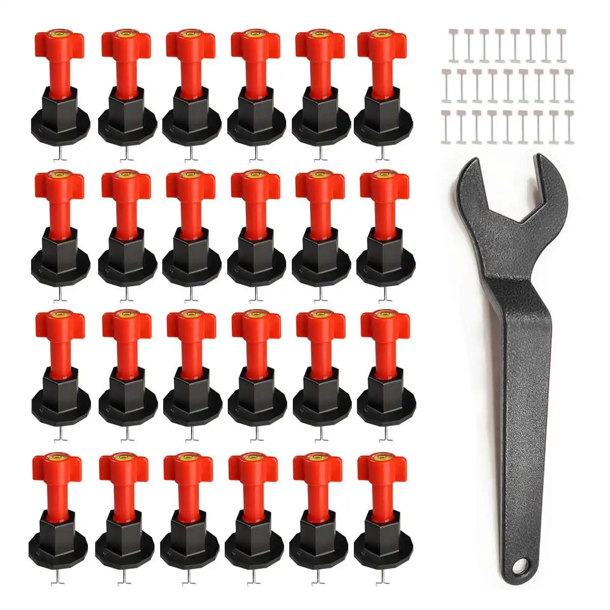 Особенности:-Выравниватель плитки может обеспечить плоскость между плитками и избежать неровностей.-При использовании для мощения ванных комнат и кухонных выходов уклон можно использовать, чтобы сделать наклон так, чтобы выход был ниже, чем в окружающей местности, и вода может быть разряжена плавно.-Он многоразовый, легко фиксируется или разбирается с помощью специального гаечного ключа.