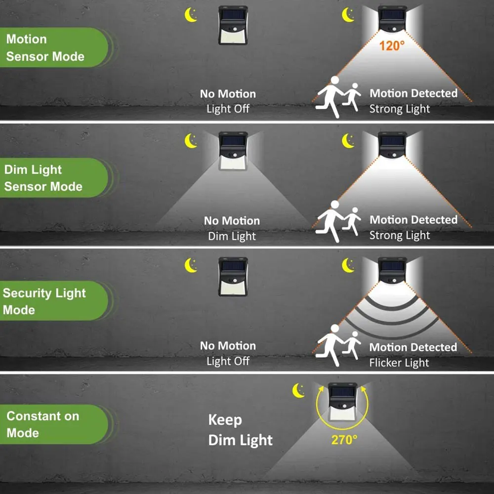 222 светодиодный светильник на солнечной батарее, уличные фонари, водонепроницаемый настенный светильник с датчиком движения, наружная, для террасы, сада, патио, украшение, 4 режима