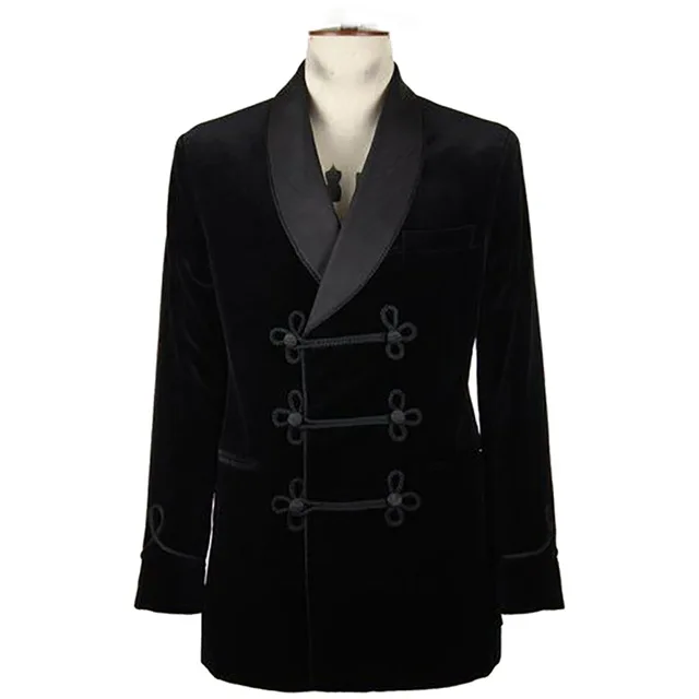 Бархат Для мужчин курение костюм бархатный пиджак только комплект со смокингом жениха тонкий костюм жениха Вечерние двубортный зимний пиджак с пуговицами в китайском стиле