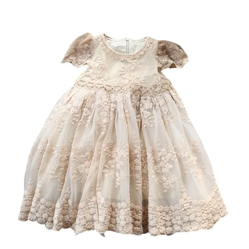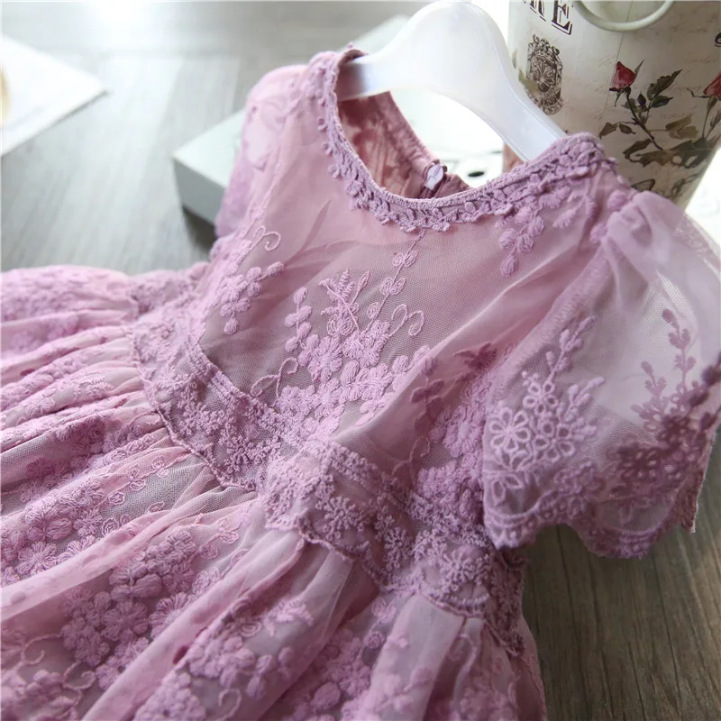 Детское кружевное платье с цветочной вышивкой, на Возраст 3-8 лет