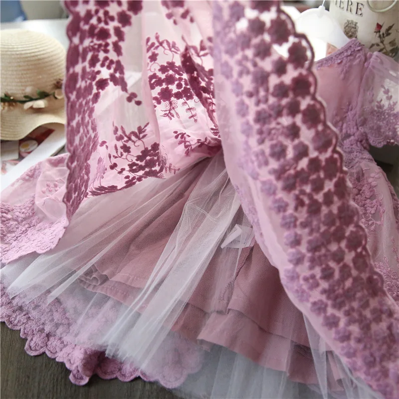 Кружевное платье для девочек, детские платья, повседневная одежда для девочек, осеннее платье с длинным рукавом, праздничное платье пачка детская одежда, От 3 до 8 лет