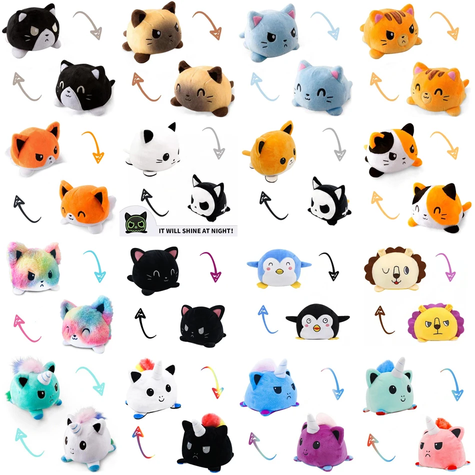 Различные раскладные кошки, забавные детские мягкие игрушки, единороги, двухсторонние куклы-раскладушки, милые игрушки, набивные игрушки для вечеринки